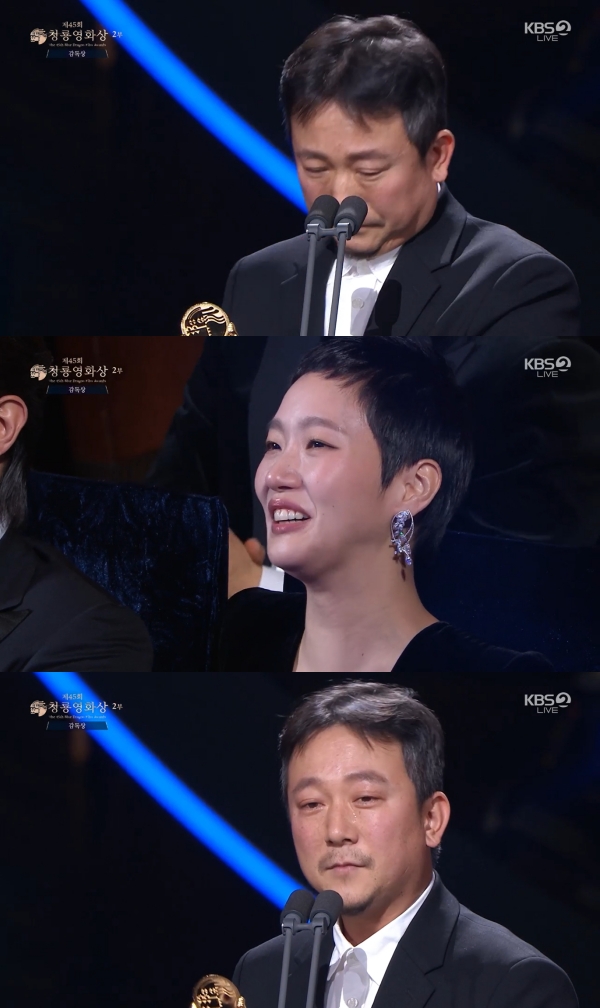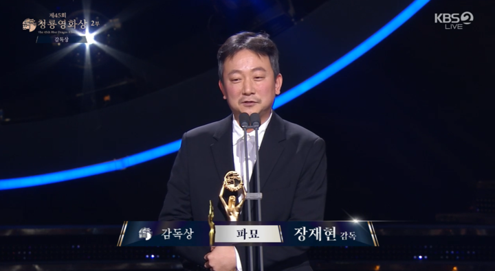 사진=KBS2[스포츠투데이김태형기자]'파묘'장재현감독이청룡영화상감독상을수상했다.29일서울영등포구여의도KBS홀에서제45회청룡영화상이열렸다.시상식장면은KBS2를통해생중계됐다.이날영화'파묘'를연출한장재현감독이감독상의영예를안았다.장감독은"학교다니면서영화를배울때김성수,류승완,김태용감독의영화를보며꿈과야망을키웠다.이렇게후보에같이오른것만으로몸둘바를모르겠는데,상을받으니더열심히하라는격려라고생각하고기쁘게받겠다"고소감을밝혔다.이어"영화를통해감사드릴분이많다.영화를자문해주신무속인선생님,장의사선생님,풍수지리사선생님,저를지켜준가족과현장의스태프들에게감사드린다.너무귀여우면서기막힌연기를해주는유해진씨,군복무중인이도현씨,존경하는김고은씨,당신이한국배우라서기쁘다"고전했다.또한"긴시상식동안견딜수없다며오늘땡땡이를친분도있다.어떨때는밥차사장님처럼,아버지처럼,친구처럼'파묘'의부적같은최민식선배와이영광함께하고싶다"고덧붙였다.장감독은눈물을보이며벅찬마음을드러냈다.[스포츠투데이김태형기자[email protected]]Copyright©스포츠투데이.무단전재및재배포금지.