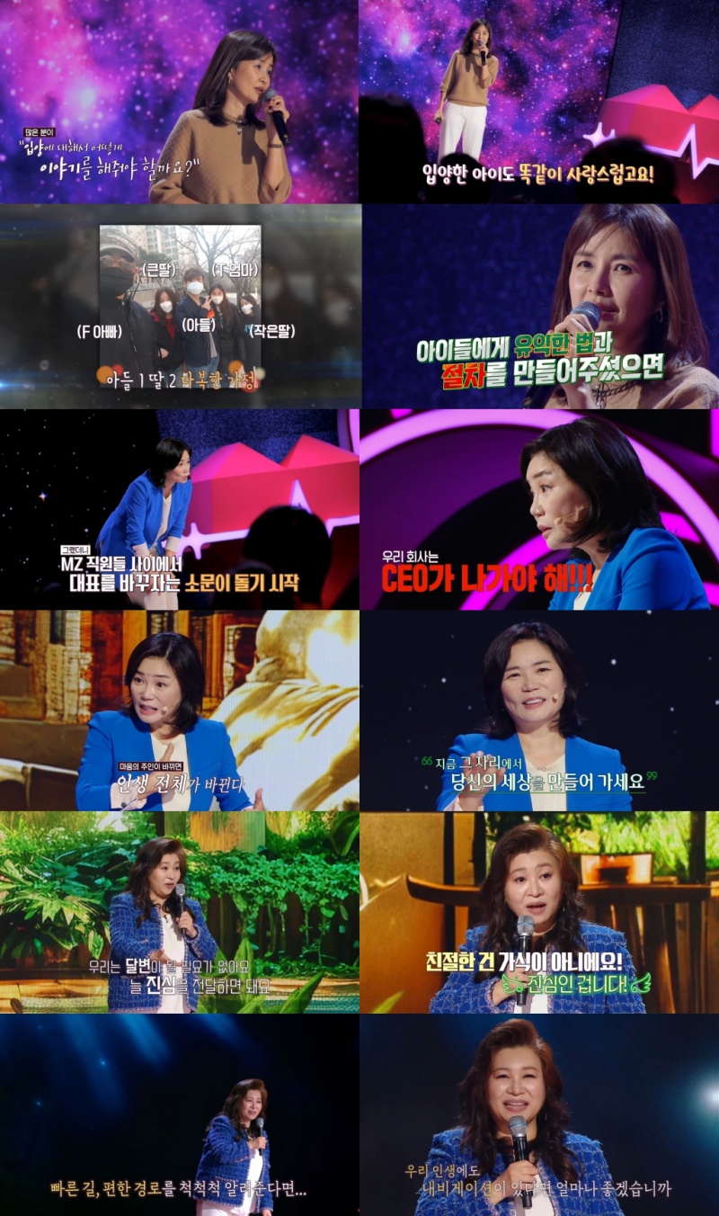 ‘강연자들’신애라·김미경의삶의원동력(사진:MBC)어제(24일)방송된MBC'심장을울려라강연자들'(이하강연자들)에서는배우신애라와스타강사김미경이강연자로나서‘삶의원동력’을주제로각자의인생이야기를진솔하게풀어내며시청자들에게깊은울림을전했다.신애라는강연자로나서며“MBC에오니친정에온기분이다”라는소감을밝혔다.그녀의대표작천사의선택,사랑이뭐길래,그리고남편차인표와함께했던‘사랑을그대품안에’영상이공개되며풋풋했던과거를회상했다.특히촬영당시차인표에게반했던순간을고백하며현장을웃음으로물들였다.이어신애라는두딸을입양한경험을바탕으로입양가족의이야기를진솔하게전했다.큰딸과의첫만남에서“기저귀가흠뻑젖어도울지않는모습에가슴이아팠다”며,아이와의신체적접촉과사랑을통해조금씩변화를만들어낸순간을떠올렸다.또한,“입양은칭찬받을일이아니라축하받을일”이라며입양에대한사회적인식변화를촉구했다.그녀는“입양과출산은다르지않다”고강조하며,“너무많은절차가입양을지연시키지않도록법적개선이필요하다”고목소리를높였다.스타강사김미경은회사재정난과건강악화를겪으며이를극복했던과정을솔직하게털어놨다.코로나19로인해강연이전면취소되면서“6개월동안통장잔고가0원이됐다”고회상했다.회사운영에대한부담으로직원들이월급삭감을자청했지만,극심한불안속에서“새벽마다책과리포트를분석하며새로운돌파구를찾았다”고말했다.김미경은이과정을통해콘텐츠사업으로전환해직원수를7명에서100명이상으로늘리며성공을거뒀다.하지만코로나19이후오프라인강연시장이다시활기를찾으며또다른위기를맞았다.직원들사이에서“CEO가경영에나서면안된다”는뒷담화를들으며고립감을느꼈고,결국스트레스와과로로혈압이189까지올라응급실에실려갔다고밝혔다.극단적인선택까지고민했던그순간,김미경은“내가원하는삶은이게아니다”라는자문을통해마음을다잡았다며,“자신만의속도로꿈을찾아가라”는메시지로강연을마무리했다.MC오은영은‘심심풀이’코너를통해청중의사연을직접받고상담하는시간을가졌다.이날소개된자영업자의손님응대고민에대해오은영은“진심과가식을구분하고,손님에게진심을담아가벼운한마디를건네라”고조언했다.이어사연자와상황극을펼치며유쾌하고도따뜻한소통의모습을보여청중들의큰호응을얻었다.신애라와김미경,그리고오은영이각자의방식으로풀어낸진심어린이야기는웃음과감동을동시에전하며시청자들에게깊은인상을남겼다.대한민국각분야의최정상강연자들이함께하는MBC강연자들은매주일요일밤9시10분에방영된다.박지혜기자bnt뉴스연예팀기사제보[email protected]©bnt뉴스.무단전재,재배포및AI데이터활용금지