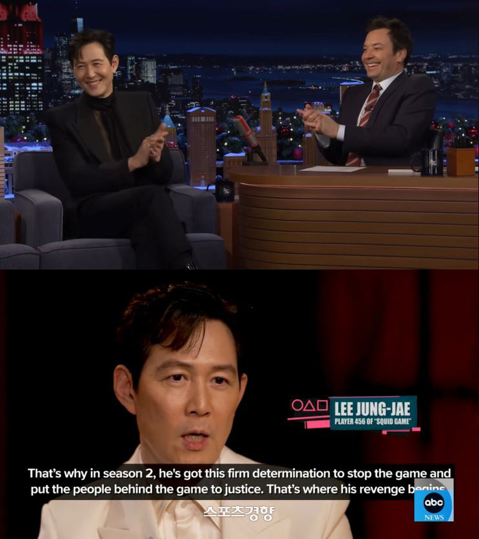 토크쇼에출연한배우이정재.아티스트컴퍼니제공배우이정재가세계적인토크쇼에출연해올해최고기대작넷플릭스드라마‘오징어게임’시즌2에대한기대감을높였다.소속사아티스트컴퍼니에따르면이정재는지난18일NBC간판프로그램‘TheTonightShowStarringJimmyFallon’(더투나잇쇼스타링지미팰런·이하‘지미팰런쇼’)에출연해코미디언겸배우MC지미팰런과함께‘오징어게임’시즌2의촬영후일담과지난30년의배우인생에대해대화를나눴다.‘투나잇쇼’는1954년부터시작돼미국내최고시청률을기록하는심야토크쇼다.이정재는시즌1으로제74회에이미상남우주연상을수상한데대해“이날황동혁감독과같이타서진짜정신이두배로없었고지금도저생각을하면가슴이뛸정도인데너무나대단한날이었다.상상할수가없다”고소회했다.또30년간의한국에서의배우활동에대해“카페에서아르바이트를하고있었는데모델일을한번해보겠냐는제안을받았고카페보다돈을많이준다고해서잠깐시작을했다.모델일을했던게연기자로캐스팅이됐고조금더돈을모아그만두려고했는데이렇게오래하게될줄몰랐다.‘오징어게임’까지하게될줄은더몰랐고이렇게‘투나잇쇼’에나오게될줄은더더욱몰랐다.믿겨지지않은날“이라고말해관객석의박수갈채를이끌었다.이어지미팰런은이정재의데뷔시절초콜릿광고사진을등장시켰고이정재와함께사진속모습을재연하며유쾌한분위기를이어갔다.이정재는주연배우로서‘오징어게임’시즌2에대한재치있는홍보도잊지않았다.크리스마스계획에대해”LA와뉴욕에서프로모션을진행했기때문에25일은잠을좀자야할것같고26일시즌2를정주행할예정“이라고말한뒤”시즌1이너무나큰사랑을받았는데더받을수있을까걱정이컸다.하지만이야기가다양해지고싶어졌고주제도굉장히선명하기때문에그만큼성공할지는모르겠지만그만큼잘만들었다“고시즌2에대한자신감을내비쳤다.또”많은사람이죽고저는열심히살려고노력한다“고귀띔해좌중의박수갈채를이끌었다.이어20일이정재는ABC채널을대표하는아침프로그램‘GoodMorningAmerica(굿모닝아메리카)’에황동혁감독과이병헌과함께출연해홍보활동을이어갔다.한국계앵커JujuChang(주주장)과의인터뷰에서이정재는”(시즌1에서)불의를보고못본척했던것이(시즌2에선)게임을멈추게하고만든사람을처벌해야겠다는복수심으로시작하는것같다“고운을뗐다.이어극의몰입에대해”배우분들이랑이야기도많이하고실제내가저런상황에놓인다면어떤행동을할까이야기도나눴다“고촬영후일담을전하기도했다.이어이정재는내달8일‘JenniferHudsonshow’(제니퍼허드슨쇼)와15일NBC‘KellyClarksonshow’(캘리클락슨쇼)에연이어출연하며‘오징어게임’시즌2의예고된흥행돌풍에불을지필예정이다.한편,‘오징어게임’시즌2는복수를다짐하고다시돌아와게임에참가하는‘기훈’(이정재)과그를맞이하는‘프론트맨’(이병헌)의치열한대결,그리고다시시작되는진짜게임을담은이야기로오는26일넷플릭스를통해공개된다.이선명기자[email protected]©스포츠경향.무단전재및재배포금지.