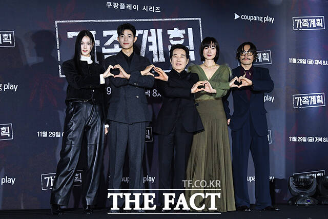 26일제작발표회개최"운명같은이야기…정말따뜻했다"배우이수현과로몬,백윤식,배두나,류승범(왼쪽부터)이26일오후서울용산구몬드리안서울이태원에서열린쿠팡플레이새오리지널시리즈'가족계획'제작발표회에참석해포즈를취하고있다./서예원기자[더팩트ㅣ최수빈기자]피한방울섞이지않은가족들의엄청난계획이시작된다.브레인해커로변신한배두나와능력을감추고있는류승범이호흡을맞춰잔혹한범죄자들을처벌할예정이다.'가족계획'은평범한듯보이지만평범하지않은이들의이야기를통해진정한가족의의미는무엇인지질문을던진다.쿠팡플레이새오리지널시리즈'가족게획'(감독김곡·김선)제작발표회가26일오후2시서울용산구몬드리안서울이태원에서진행됐다.현장에는김정민크리에이터와배우배두나류승범백윤식로몬이수현이참석했다.'가족계획'은기억을자유자재로편집할수있는특수한능력을가진엄마가가족들과합심해악당들에게지옥을선사하는이야기다.김정민크리에이터는"요즘부모라는이름으로아이들을학대하고방치하는끔찍한사건들이계속발생하고있지않냐.이들에게가족은어떠한의미일까라는생각에서출발했다"고말문을열었다.이어"잔혹한범죄자들이있는가상의도시를설정했다.이도시에서엄청난기술을가진사람들이가족으로위장해서악당들을처벌하는이야기"라고덧붙였다.배두나는특별한능력의소유자이자아이들에게만큼은다정한엄마한영수역을맡는다.한영수는상대의뇌를장악하고기억을조작할수있는능력을가진브레인해커다.배두나는"한영수는감정을읽을수없는인물이다.감정이결여된사람이아닐까싶을정도로어떤일에도동요되지않는사람이다"라고소개했다.이어"저는보통생각할때얼굴에감정이드러나는편이다.그래서감정이튀어나오는연기를선호하는데'가족계획'은정반대의연기를해야하다보니까어려움도있었다"며"한번씩감정이폭발할때도있었다.그런특수한상황에중점을두고연기를했다"고전했다.배우배두나가26일오후서울용산구몬드리안서울이태원에서열린쿠팡플레이새오리지널시리즈'가족계획'제작발표회에참석해포즈를취하고있다./서예원기자류승범은능력을감춘채어딘가모르게소심하지만아내에게만큼은무한'사랑꾼'인백철희역을연기한다.류승범은"가족같은배우분들과함께해서정말좋았다.저또한머릿속이가족으로가득차있다보니까운명처럼느껴졌다.굉장히뜻깊은시간이었다"고소감을전했다.이어"액션을정말많이했다.진짜제대로했다.여러가지상황때문에미리연습할수있는시간이없었다.그래서현장에서연습하고촬영에들어갔는데다행히몸이녹슬지않았더라"라고너스레를떨었다.이에로몬은"정말장난아니었다"고호응했고이수현또한"반했다"고말해현장을웃음바다로만들었다.류승범은지난해디즈니+오리지널시리즈'무빙'에서의문의택배기사프랭크역을맡아남다른액션을보여준바있다.류승범은"'무빙'때문에무술팀도고민을많이했다.이전작품과차별화된액션을보여주기위해많이노력했다"며"'무빙'은초능력을가진초능력자들의싸움이고'가족계획'은현실에서의싸움이다.고도의훈련으로탄생했다"고설명했다.백윤식은까칠하지만가족들을항상챙기는할아버지백강성으로분한다.백윤식은"다섯명이진정한가족으로거듭나기를가장많이바라는사람이다.가족간의갈등을해결해주는버팀목같은인물"이라며"손녀한테SNS계정을사주라고말할정도로친구같은젊은할아버지다"라고소개했다.로몬은따뜻하고온화한아들백지훈역으로시청자들과만난다.로몬은"지훈이는은은하면서도날카로운눈빛을가지고있는친구"라며"지금까지해보지않았던섹시한인물이다.섹시함의아이콘이되고싶다"고말해웃음을자아냈다.백지훈은천재적인해킹능력을갖고있는화이트해커다.이에로몬은"해커관련한영화를많이봤다.지훈이는고등학생이다보니샤프한느낌을주기위해서처음으로6~7kg가량감량했다.은은하면서도날카로운분위기를자아내기위해노력을많이했다"고전했다.배우이수현과로몬,백윤식,배두나,류승범,김정민크리에이터(왼쪽부터)가호흡을맞춘쿠팡플레이새오리지널시리즈'가족계획'은오는29일오후8시첫방송된다./서예원기자이수현은지훈과동갑내기이자까칠하고예민한딸백지우역으로극의몰입감을더한다.'커버낫''에잇세컨즈''2023S/S서울패션위크'모델로활동한이수현은'가족계획'을통해첫연기에도전한다.그는"새로운신발같은느낌이다.정말특별하고소중한시간이었다"고소감을밝혔다.이어"지우랑제가실제나이차이가얼마나지않다보니까수월한부분도있었다.사춘기소녀들의모습을많이떠올렸다"며"감독님,작가님이랑'만약지우라면어떻게했을까'에대해서얘기를많이나누면서캐릭터를구축했다"고덧붙였다.'가족계획'은하나의목적을가진5명의이야기를통해진정한가족의의미는무엇인지에대한질문을던진다.백윤식은"제대사에'오늘이어제보다더가족같아지지않았니'라는대사가있다.범죄조직을응징하는과정에서이들이서로의지하고사건을해결하면서진정한가족으로거듭난다"고말했다.또한부부로호흡을맞추는배두나와류승범의'케미'도많은시청자들의관심을받고있다.배두나는"친구같은부부다.류