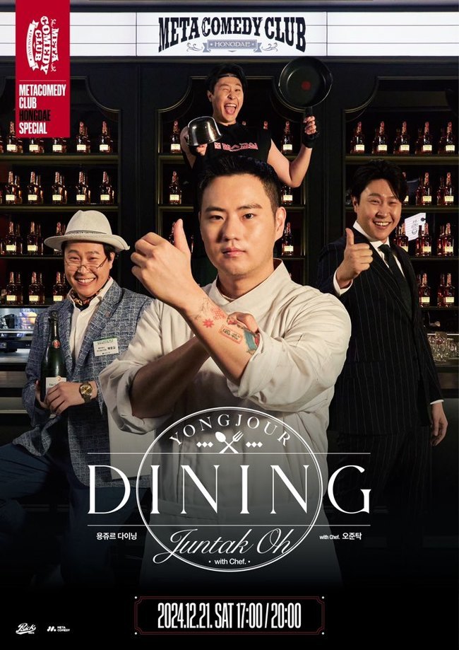 메타코미디제공[뉴스엔박수인기자]‘피식대학’이용주가‘흑백요리사’오준탁셰프와함께특급컬래버레이션을펼친다.코미디언이용주는오는12월21일서울메타코미디클럽홍대에서넷플릭스‘흑백요리사’에출연한오준탁셰프와함께‘용쥬르다이닝’무대를선보인다.‘용쥬르다이닝’은‘흑백요리사’에서‘영탉’이란닉네임으로활약한스타셰프오준탁이직접요리한시그니처메뉴를이용주의부캐들이큐레이팅하며함께즐기는특별한시간이다.특히오준탁셰프가준비한다양한코스요리에따라이용주의부캐3종세트도요다부장,스티브리,배용길의유쾌하고다채로운퍼포먼스를한자리에서만나볼수있을시간으로팬들의기대감을높이고있다.무엇보다그간관객소통,퍼포먼스형중심의코미디공연을진행했던메타코미디클럽홍대에서‘코미디’와‘셰프의다이닝’을결합한신선한콜라보행사를개최한다는점이남다른의미를지닌다.메타코미디클럽홍대에서는이번행사를계기로공간을다양하게활용하는시도를통해또한번코미디공연의새로운한획을그려나갈전망이다.‘용쥬르다이닝’은오는12월21일오후5시,8시각각1부,2부로나뉘어진행될예정이며,자세한내용은26일‘메타코미디클럽홍대’공식소셜미디어를통해확인할수있다.뉴스엔박수인abc159@기사제보및보도자료[email protected]ⓒ뉴스엔.무단전재&재배포금지Copyright©뉴스엔.무단전재및재배포금지.