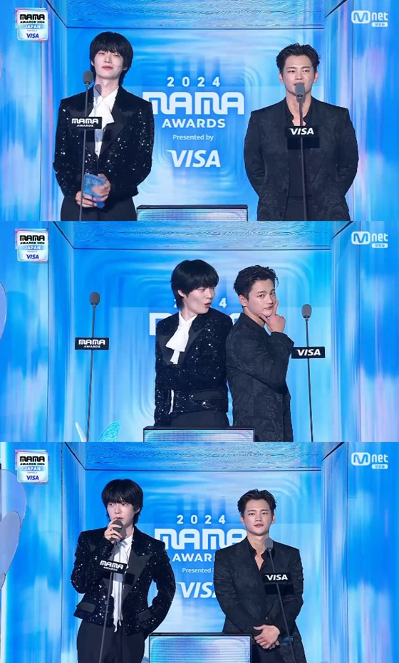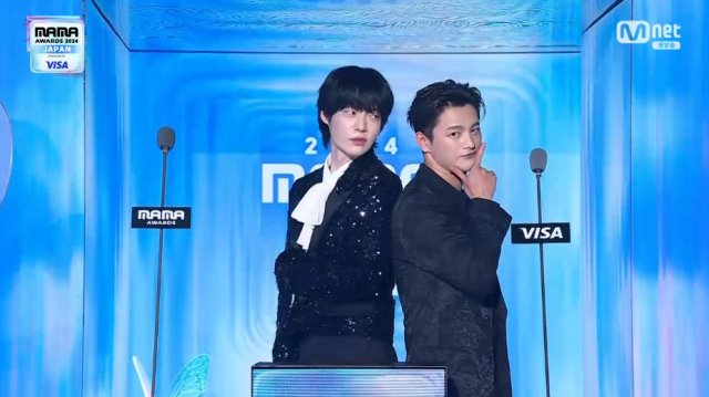 [스타뉴스|최혜진기자]안재현,서인국/사진=엠넷'월드게이'로화제를모았던배우안재현,서인국이'마마어워즈재팬'에출국했다.22일오후6시일본오사카교세라돔에서는'2024마마어워즈재팬'(2024MAMAAWARDSJAPAN,이하'마마어워즈재팬')'이개최됐다.이날안재현,서인국은시상자로'마마어워즈재팬'에참석했다.서인국은"우리가뮤직비디오에서의커플연기로많은사랑을받지않았냐"고말했다.최근서인국과안재현은가수케이윌의'이러지마제발'에이어후속편인'내게어울릴이별노래가없어'뮤직비디오에출연해커플연기를선보여'월드게이'라는수식어를얻었다.이에안재현은"덕분에'마마어워즈'초대도받았다.감사의표시로포즈를해보자"며서인국과화보를연상하게하는커플포즈를취했다.안재현은"서인국과내가친구지만취향이살짝다른데오늘은잘맞는거같다"고했다.서인국은"음악의힘이다.다른것의경계를허물고하나가되게해준다"고했다.이들은페이보릿글로벌퍼포머피메일부문수상자로그룹아이브,팬스초이스부문수상자로엔하이픈을호명하고트로피를전달했다.한편'2024마마어워즈'는한국시간22일(미국현지시간21일)미국LA돌비시어터에서포문을열고,그열기를이어일본에서22~23일양일간'마마어워즈재팬'을진행한다.'마마어워즈재팬'1일차라인업에는그룹보이넥스트도어,엔하이픈,에스파,아이브,이즈나,플레이브,투모로우바이투게더,트레저,제로베이스원,미야오,미아이,가수조유리,이영지,배우안재현,이지아,변우석,최현욱,공명,한해,김민하,곽동연,서인국,설인아,방송인홍진경,이혜성,나영석PD,그리고블랙핑크의로제와팝가수브루노마스등이이름을올렸다.최혜진기자[email protected]©스타뉴스&starnewskorea.com,무단전재및재배포금지