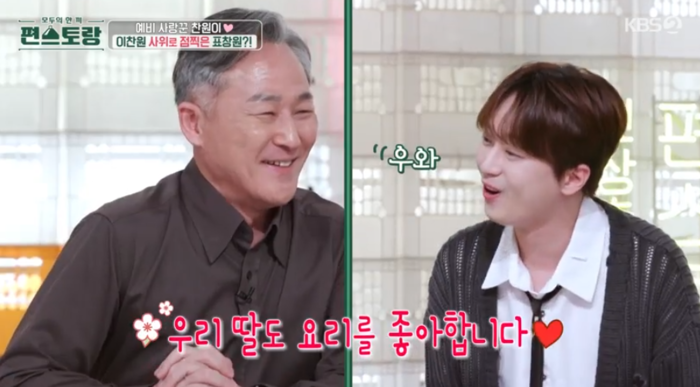 KBS2‘신상출시편스토랑’가수이찬원이결혼에대한생각을전했다.22일방송된KBS2‘신상출시편스토랑’(이하‘편스토랑’)에는스페셜MC로배우정영주와프로파일러표창원이,게스트로배우이상우가출연했다.정영주는이상우와의인연에대해“(이상우와는)5년전에드라마를같이했었다.아내되는김소연배우와는지금작품을같이찍고있다”고언급했다.그러면서이상우김소연부부의케미에대해“촬영현장이나집이나똑같다.‘얘네는언제까지설탕을볶을건가?’(생각했다).깨소금이아니라설탕을볶고있다”고이야기했다.KBS2‘신상출시편스토랑’이에붐은“사랑꾼랭킹하면표창원도유명하다.자료가있다.로맨틱키스영상”이라고언급했다.표창원은2016년당선직후아내에게자축의키스를건네화제를모은바있다.이어붐은“요즘에도사모님과키스를하시냐”고물었고,표창원은“부부인데당연한거아닌가.가장최근에한키스는오늘아침”이라고답했다.이에질세라이연복역시“저도항상출근하고퇴근하면(애정표현을한다)”며거들었다.이를듣던이찬원은“이런거듣고있으면결혼하고싶어진다”며부러운눈빛을보냈다.KBS2‘신상출시편스토랑’그러자표창원은“찬원씨,참고로내딸이한살어리다.요리를좋아한다”고어필(?)하기시작했다.이에이찬원은곧장“장인어른!아버님!”이라고외치며넙죽인사를해스튜디오를웃음바다로만들었다.장정윤온라인기자[email protected]©스포츠경향.무단전재및재배포금지.