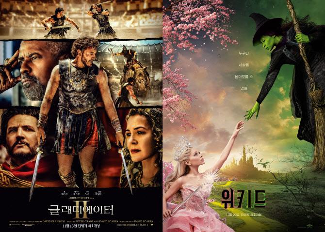 [이데일리스타in김보영기자]영화‘글래디에이터Ⅱ’(감독리들리스콧,이하‘글래디에이터2’)가개봉후7일연속박스오피스1위를지킨가운데,뮤지컬외화대작‘위키드’가20일오늘개봉해박스오피스새왕좌를꿰찰전망이다.20일오전영화진흥위원회영화관입장권통합전산망에따르면‘글래디에이터2’는전날하루동안3만7332명을모으며박스오피스정상을유지했다.누적관객수는53만1401명이다.개봉7일만에누적50만돌파에성공했다.지난13일개봉한‘글래디에이터2’는막시무스의죽음으로부터20여년후,콜로세움에서로마의운명을건결투를벌이는루시우스(폴메스칼분)의이야기를그린영화로,지난2000년개봉한전편에이어리들리스콧감독이연출을맡았다.전편과달리청소년관람불가등급을내걸었음에도주말포함해박스오피스1위를독주중이다.다만2주차평일에접어들면서급격히일일관객수가감소한모양새로,20일이날한국에서최초개봉한‘위키드’에왕좌를밀릴가능성이높다.홍경,노윤서,김민주주연첫사랑로맨스영화‘청설’(감독조선호)이안정적으로꾸준히관객수를확보하며2위를유지중이다.같은날2만4521명을동원해누적관객수57만3456명을나타냈다.박신양,이민기,이레주연오컬트영화‘사흘’(감독현문섭)이3위를기록해9926명의관객들이관람했다.누적관객수는17만1563명으로누적20만돌파도쉽지않은상황이다.‘베놈;라스트댄스’가4위를기록했고,‘아마존활명수’가5위를기록했다.실시간예매율에서는20일이날개봉하는‘위키드’가압도적예매량을기록하며뮤지컬,영화팬들의높은기대감을반영하고있다.이날오전기준사전예매량13만9000명대까지치솟으며전체1위를달리고있다.같은날개봉하는송승헌,조여정,박지현주연의청불스릴러영화‘히든페이스’(감독김대우)가청불관람등급에도불구,시사회후열띤반응을모아전체예매율2위,한국영화예매율1위를기록중이다.사전예매량5만명을넘어섰고,현재4만8108명의예매량을기록중이다.디즈니애니메이션영화‘모아나2’가2만5948명으로예매율3위,‘청설’이4위를기록했다.김보영([email protected])Copyright©이데일리.무단전재및재배포금지.