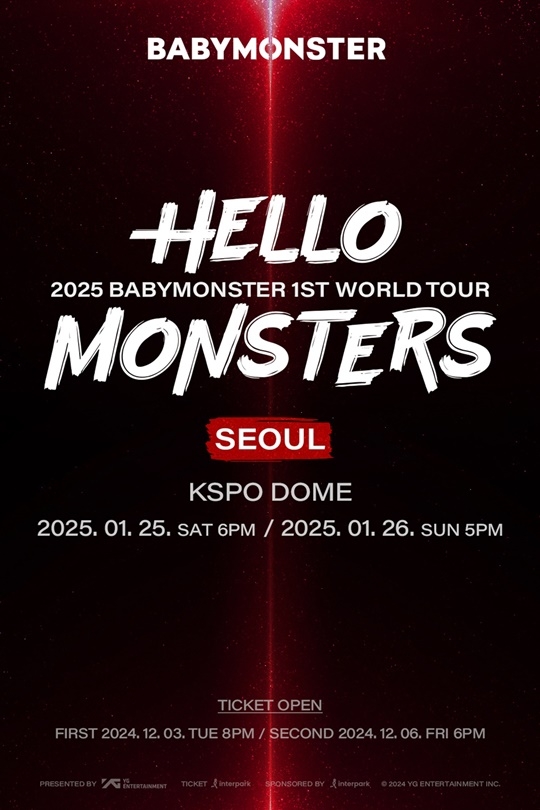베이비몬스터.사진lYG엔터테인먼트YG신인걸그룹베이비몬스터가서울KSPODOME에초고속입성하며데뷔첫월드투어의화려한시작을예고했다.20일YG엔터테인먼트에따르면베이비몬스터는오는1월25일부터26일까지양일간서울방이동올림픽공원KSPODOME서‘2025베이비몬스터1st월드투어<헬로몬스터즈>인서울’(2025BABYMONSTER1stWORLDTOUR<HELLOMONSTERS>INSEOUL)공연을개최한다.이로써베이비몬스터는공식데뷔1년도채되지않아‘K팝의성지’로불리는KSPODOME에깃발을꽂게돼주목된다.신인걸그룹이이같은압도적규모의공연장에서첫번째콘서트를개최하는건매우이례적이기때문.고퀄리티공연에대한YG의자신감과멤버들을향한음악시장의높은기대감이엿보인다.무엇보다베이비몬스터의본격적인해외무대활약을알리는신호탄인만큼전세계팬들의반응이뜨겁다.이번월드투어는정규1집‘드립(DRIP)’을포함한세트리스트는물론베이비몬스터만의탄탄한라이브퍼포먼스와독보적무대역량을만나볼수있는자리라치열한티켓팅경쟁이예상된다.베이비몬스터는서울에이어2월미국뉴저지,3월로스엔젤레스등글로벌전역으로투어를확대해나간다.아직그외일정은베일에가려져있지만YG가“최대한많은팬분들을찾아갈계획”이라고밝혔던만큼북미뿐만아닌다양한지역으로발걸음을옮겨인기몰이에불을지필전망이다.‘2025베이비몬스터1st월드투어<헬로몬스터즈>인서울’은인터파크티켓서오픈된다.선예매는MONSTIEZMEMBERSHIP가입자를대상으로오는12월3일오후8시부터4일오후11시59분까지진행되며,멤버십미가입자를위한일반예매는오는12월6일오후6시부터다.[이다겸스타투데이기자]Copyright©스타투데이.무단전재,재배포및AI학습이용금지