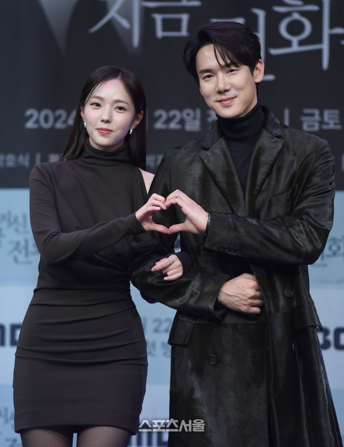 채수빈-유연석이21일상암동MBC에서열린새금토드라마‘지금거신전화는’제작발표회에서포토타임을갖고있다.‘지금거신전화는’은협박전화로시작된,정략결혼3년차쇼윈도부부의시크릿로맨스릴러로오는22일첫방송예정이다.2024.11.21.최승섭기자[email protected][스포츠서울|정하은기자]‘멜로장인’유연석과채수빈이2024년MBC금토드라마의대미를장식한다.오는22일오후9시50분첫방송되는MBC새금토드라마‘지금거신전화는’은협박전화로시작된,정략결혼3년차쇼윈도부부의시크릿로맨스릴러다.유연석,채수빈,허남준,장규리등실력파배우들과탄탄한필력을자랑하는김지운작가,감각적인연출력의박상우감독이의기투합한작품이다.첫방송을앞두고21일오후서울상암MBC골든마우스홀에서제작발표회가열렸다.이날현장에는배우유연석,채수빈,허남준,장규리와박상우PD가참석했다.유연석이21일상암동MBC에서열린새금토드라마‘지금거신전화는’제작발표회에서포토타임을갖고있다.‘지금거신전화는’은협박전화로시작된,정략결혼3년차쇼윈도부부의시크릿로맨스릴러로오는22일첫방송예정이다.2024.11.21.최승섭기자[email protected]채수빈이21일상암동MBC에서열린새금토드라마‘지금거신전화는’제작발표회에서포토타임을갖고있다.‘지금거신전화는’은협박전화로시작된,정략결혼3년차쇼윈도부부의시크릿로맨스릴러로오는22일첫방송예정이다.2024.11.21.최승섭기자[email protected]년만에MBC드라마로돌아온유연석은“오랜만에새로운장르로시청자를만나게돼서반갑고설렌다”고말했다.채수빈은“여름에뜨겁고치열하게촬영했다.어떻게보실지걱정이되기도한다”고소감을이야기했다.동명의카카오페이지인기웹소설을원작으로하는‘지금거신전화는’은로맨스와스릴러가결합된‘로맨스릴러’장르다.정략결혼으로맺어진쇼윈도부부백사언(유연석분)에게어느날아내홍희주(채수빈분)를납치했다는협박전화가걸려오면서예측불가한전개가펼쳐진다.의문의인물에게납치당하며삶을바꿔보기로결심한희주와협박전화를걸어온범인을쫓는사언은오랫동안서로몰랐던부분을알아가며소중한존재가되어간다.때론설레고,긴장감넘치게교차하는두주인공의감정에따라인물들의관계성이달라지며긴장감을선사할예정이다.박상우PD는“초반에는스릴러지만후반에는로맨스가드라마를따뜻하게만들어줄것”이라고설명했다.원작과의차별점에대해선“웹소설포맷의특성상수위가높아서지상파에맞게수위조절에신경을많이썼다.또원작에없는캐릭터가추가되면서풍성해졌다”고답했다.멜로장인유연석과채수빈의만남도이목을모은다.유연석은집안,외모,능력등무엇하나빠지는게없는최연소대통령실대변인백사언역을,채수빈은사언의아내이자함묵증을앓고있는수어통역사홍희주역을맡아처음로맨스호흡을맞춘다.두사람은대통령실대변인과수어통역사로서남과소통하는직업을가졌지만,정작서로는단절된채살아가는‘불통부부’이다.유연석,채수빈,장규리,허남준(왼쪽부터)이21일상암동MBC에서열린새금토드라마‘지금거신전화는’제작발표회에서포토타임을갖고있다.‘지금거신전화는’은협박전화로시작된,정략결혼3년차쇼윈도부부의시크릿로맨스릴러로오는22일첫방송예정이다.2024.11.21.최승섭기자[email protected]이작품을선택한이유에대해유연석은“최근로맨스물에서는우유부단하거나따뜻한인물을맡았는데이대본에서는굉장히냉철하고자신의감정을숨기는차가운가슴을가진인물이어떤사건을계기로로맨스가짙어지더라.양파껍질처럼하나씩파헤쳐나가면서변화되어가는사언의모습이매력적이었다”고말했다.채수빈은“로맨스와스릴러가섞여서재미있었다.희주라는캐릭터도너무하고싶었다.늘말로표현하는게익숙한데수어로사람들과소통하는것도새로웠고억압받고힘든삶을살아서수동적인인물인것같으면서도강단있고‘똘기’가있는부분이재미있고통통튀었다”고답했다.캐릭터를위해노력한점에대해서도밝혔다.유연석은“대통령실대변인역할을위해아나운서에서교육도받았다.또냉철한이미지를위해제몸에싹감기게끔모든수트를맞춤수트로맞췄다”고설명했다.촬영두달전부터수어를배웠다는채수빈은“수어가쉽지않더라.우여곡절이많았지만열심히했다고스스로도느끼고있다”고답했다.유연석은채수빈과의호흡에대해“예전에커피광고로만난적이있다.천천히친해지긴했지만후반부로맨스케미가폭발할것”이라고예고했다.허남준이21일상암동MBC에서열린새금토드라마‘지금거신전화는’제작발표회에서포토타임을갖고있다.‘지금거신전화는’은협박전화로시작된,정략결혼3년차쇼윈도부부의시크릿로맨스릴러로오는22일첫방송예정이다.2024.11.21.최승섭기자[email protected]장규리가21일상암동MBC에서열린새금토드라마‘지금거신전화는’제작발표회에서포토타임을갖고있다.‘지금거신전화는’은협박전화로시작된,정략결혼3년차쇼윈도부부의시크릿로맨스릴러로오는22일첫방송예정이다.2024.11.21.최승섭기자[email protected]정신건강의학과전문의이자미스터리전문개인방송크리에이터‘지상우’역의허남준과자타공인최고인기아나운서‘