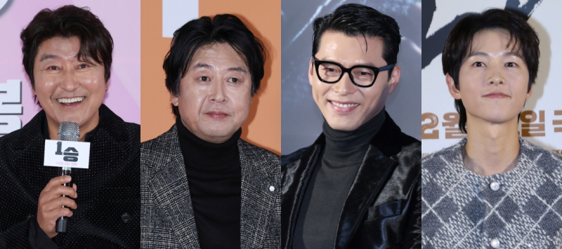 배우송강호,김윤석,현빈,송중기(사진=IS포토)송강호,김윤석부터현빈,송중기까지그야말로톱스타진수성찬을차렸다.한국영화기대작들이흥행배우조커를내세워올해마지막레이스를장식한다.비수기동안괄목할만한성적을거둔한국영화가없는극장가분위기를전환할대목이기도하다.‘1승’,‘소방관’,‘대가족’(사진=각사제공)먼저12월둘째주까지개봉하는1라운드는‘진정성’대결이다.송강호·박정민주연여자배구영화‘1승’과곽도원·주원의실화기반‘소방관’이지난4일포문을열었다.오는11일에는김윤석·이승기가부자호흡을맞춘가족코미디‘대가족’이참전한다.연말에어울리는진한감동과소소한웃음으로무장했다는공통점이있다.공교롭게구도도비슷하다.송강호,곽도원,김윤석이베테랑다운관록으로중심을잡으면,젊은피박정민과주원,이승기가밀거나당기는식이다.특히송강호와김윤석,그리고음주운전물의를일으켰으나곽도원또한천만영화주연작보유자다.안정된연기력과흥행성은이미증명됐다는뜻이다.‘1승’에서송강호는백전백패,이겨본적없지만배구에진심인감독김우진역으로여자배구팀‘핑크스톰’의1승을목표로전념한다.‘소방관’의곽도원은5년연속구조대상자구출횟수전국1등인구조반장진섭역으로목숨걸고기꺼이현장에뛰어드는소방관이다.‘대가족’의노포만둣집사장함무옥역김윤석은스님이된아들의생물학적자식을주장하는아이들과의만남으로성장하는장년을그린다.특히송강호와김윤석은지난해개봉한‘거미집’(최종31만),‘노량:죽음의바다’(457만)보다친근하고따스한얼굴로나서관객의반가움을더한다.개봉하루전인3일오후11시께윤석열대통령의비상계엄선포와당일인4일오전4시27분께해제가이어진상황속관객수에영향이없을수없었겠지만‘소방관’은개봉일하루8만1678명이관람해전체박스오피스1위로오프닝스코어를기록했다.같은날‘1승’은4만6363명이관람해100만관객을돌파한디즈니애니메이션‘모아나2’를3위로추격했다.박스오피스고지를걸고예매율은8일오전11시기준‘모아나2’가22.6%로정상을차지했다.‘소방관’이21.5%로뒤따르는가운데개봉3일을앞둔‘대가족’은예매율4.4%를기록했다.기존한국영화시사회보다이른사전시사회를통해실관람호평을확보하는전략을채택했기에개봉전주주말까지입소문을타는것이관건으로보인다.‘하얼빈’현빈,‘보고타:마지막기회의땅’송중기(사진=각사제공)크리스마스부터연말까지2라운드의주인공은현빈과송중기다.타국에서치열했던우리나라역사적사건을기점으로그속의인물들을조명하는작품의맞대결이다.25일개봉하는‘하얼빈’은1909년이토히로부미를처단하기위해하얼빈에모인독립군을,31일개봉하는‘보고타:마지막기회의땅’(이하‘보고타’)은IMF직후콜롬비아보고타에서새희망을품고자리를잡은한인사회를배경으로한다.현빈은‘하얼빈’에서대한의군참모중장안중근역을맡았다.앞서제작보고회에서그는역사적위인인안중근을연기하는부담이있었다면서도“목표를달성하기위해서걸어가야했던,그렇게지키려고했던신념과의지를표현하고자했다”며영하40도추위에서촬영한몽골로케이션촬영담을꺼내기대를높였다.‘남산의부장들’의우민호감독이연출한제작비300억원대대작이며현빈은홍보를위해‘유퀴즈온더블록’으로13년만의토크쇼출연도불사했다.그런가하면송중기는‘보고타’에서1997년부터2008년까지,밑바닥소년국희가보고타한인사회의실세로성장하는모습을그려낸다.제작보고회에서송중기는“제가최근에한캐릭터중가장욕망이득실득실한친구”라며“상황과나이에맞게캐릭터가바뀐다.나중에는용암처럼끓는다”고예고했다.김성제감독은“송중기가유일했다.좋은목소리뿐만아니라소년에서청년까지대비를보여줄수있는얼굴이있다”고신뢰를드러냈다.대목에포진된톱스타들의출격에여느때보다극장가는활기를기대하고있다.CGV서지명커뮤니케이션팀팀장은“배우진이화려할뿐아니라장르나소재가가족등여럿이함께보기좋은작품라인업”이라며“또팬층이두터운배우들의출연도큰기대요소”라고밝혔다.변수로꼽힌‘모아나2’의장기흥행등외화강세나넷플릭스‘오징어게임’시즌2공개에대해선“한국영화에불리하기보단‘요즘볼게많다’는반응을형성하는측면에서유의미하다.콘텐츠자체에관심많은층은극장영화도소비한다”며“연말이기에가벼우면서도여운을남기는작품이주목받을것”이라고전망했다.또다른극장관계자는“‘파묘’나‘범죄도시4’처럼한작품이주목받아천만관객을달성하는것도좋지만여러작품이관객을고루견인하는것도중요하다”며“12월초개봉하는작품들이출발을잘끊어주면흥행분위기를잘탈수있을것”이라고부연했다.이주인기자[email protected]©일간스포츠.무단전재및재배포금지.