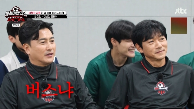 JTBC‘뭉쳐야찬다3’캡처JTBC‘뭉쳐야찬다3’캡처[뉴스엔서유나기자]전축구선수안정환이'2024넥슨아이콘매치'에서등번호가밀린전축구선수김남일을놀렸다.12월8일방송된JTBC예능'뭉쳐야찬다3'(이하'뭉찬3')59회에서는안정환,김남일이'2024넥슨아이콘매치'의비하인드를공개했다.'2024넥슨아이콘매치'에서선수시절등번호19번을그대로달고출전한안정환은,5번이었던김남일의55번등번호를보곤"아무리짜쳐도번호는밀리면안되지"라고놀렸다.김남일은"형(5번이)푸욜이에요"라며어쩔수없었음을어필했지만김진짜는"퍼디난드,칸나바로,푸욜다5번인데코치님도5번다셨어도될것같다"고일침해김남일을할말없게만들었다.기세등등한안정환은"자기번호다다는데넌55번.무슨버스냐?너5번달고싶다고칸다바로한테가서울었다며.감독한테가서울었다며.다됐는데너만55번아냐"라며가짜뉴스까지살포하며김남일을약올려웃음을자아냈다.한편지난10월19일과20일양일간서울월드컵경기장에서전직월드클래스축구선수들의축구이벤트경기'2024넥슨아이콘매치'가치러졌다.뉴스엔서유나stranger77@기사제보및보도자료[email protected]ⓒ뉴스엔.무단전재&재배포금지Copyright©뉴스엔.무단전재및재배포금지.