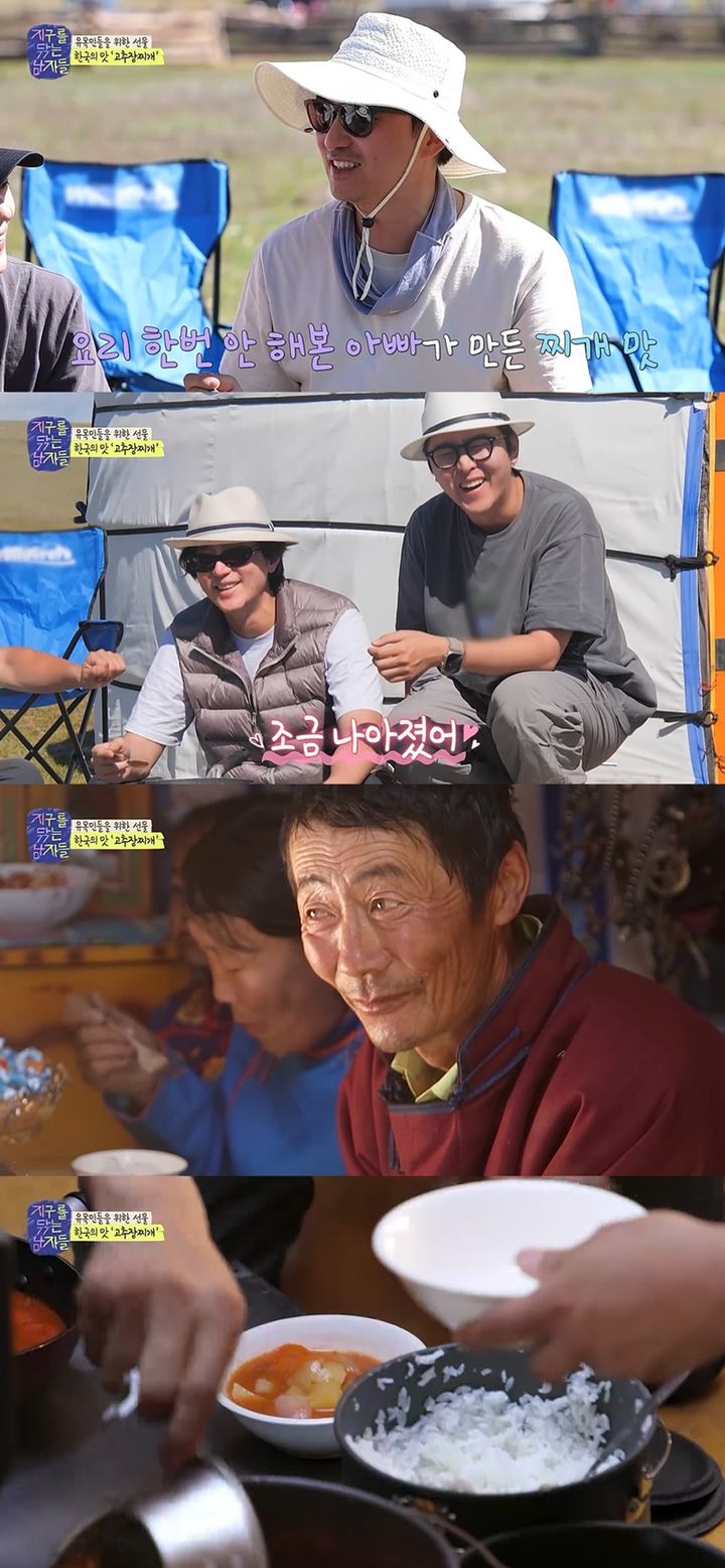 [서울=뉴시스]MBC·라이프타임예능물'지구를닦는남자들'이19일오후9시방송된다.(사진=MBC,라이프타임제공)[email protected]*재판매및DB금지[서울=뉴시스]정서현인턴기자=배우김석훈과권율이각자비장의레시피로몽골오지에서요리대결에나선다.19일오후9시방송되는MBC·라이프타임예능물'지구를닦는남자들'(이하'지닦남')에서는8박9일간의몽골여행마지막날모습이그려진다.'지닦남'은없으면없는대로떠나는여행을통해환경을돌아보는프로그램이다.이날'지닦남'크루들은유목민가족에게받은따뜻하고정성스러운환대에감사의마음을전하기로한다.이들은아껴뒀던음식재료들로고추장찌개한상차림을준비한다.김석훈과권율이각자비장의레시피로자존심을건요리대결에나선다.김석훈은앞서김치수제비로크루들에게엄청난혹평을받았던바있다.이날김석훈은자존심회복을위해절치부심쓰저씨표고추장찌개를만든다.하지만의외의실력자권율의등장에김석훈은잔뜩긴장한다.이에김석훈은'이것'을무려한주먹씩이나찌개에투하해모두를깜짝놀라게한다.대망의맛평가시간,유목민들은'지닦남'크루들이준비한고추장찌개를한입맛보자마자잠시말을잇지못한다.이어"음식에생선이들어있네?!"라고물어크루들을잔뜩긴장하게만든다.대체고추장찌개에무슨일이일어난것인지궁금증을안긴다.☞공감언론뉴시스[email protected]©뉴시스.무단전재및재배포금지.