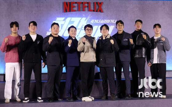 넷플릭스예능프로그램‘최강럭비’제작진과출연진.사진|강영국기자이번엔‘최강럭비’다.오직전진하는,한번만봐도빠질수밖에없는강렬한스포츠의매력을담았다.5일오전서울용산CGV아이파크몰에서넷플릭스예능‘최강럭비:죽거나승리하거나’(이하최강럭비)제작발표회가열렸다.장시원PD,정용검아나운서가참석했다.여기에나관영(한국전력공사),정연식(현대글로비스),오지명(포스코이앤씨),이용운(OK읏맨럭비단),김원주(고려대학교),서우현(연세대학교)선수가함께했다.‘최강럭비’는승리의영광을위해온몸을던지며필사의전진을이어가는럭비선수들의진짜승부를보여주는스포츠서바이벌예능으로,대한민국최강의럭비팀을가리기위한한달여간의여정을그린다.‘최강야구’‘강철부대’‘도시어부’등을연출한장시원PD가이번에는대한민국럭비선수들의치열하고처절한전투를담는다.오직승리를위해전진하는럭비선수들의역동적이고격렬한서바이벌과‘럭비불모지’라고불릴만큼열악한환경에도럭비를포기하지않는선수들의열정과진심을진정성있게보여줄예정이다.장시원PD는“우연히시작된거다.‘최강야구’시즌1끝나고우연히삿포로에간적있는데설원을보는데그때이설원에핏빛이있으면어떨까.이설원에서대전투가벌어지면이하얀색과핏빛이겹치면강렬할것같더라.그렇게숙소에돌아와할수있는게뭘까생각했는데럭비가떠올랐다”고말했다.이어“그전에본적은없는데,한국에돌아와서처음으로럭비를봤다.새로운세계를만나는느낌이었다.제가본경기에선수가5명이나실려가더라.이들에겐너무당연한일이더라.왜이렇게까지하는지궁금증이생겼다.생애처음본순간럭비라는세계에있는사람은왜이렇게모든걸던져서하나싶더라.우승상금도없다고하더라.이세계에사람은오늘경기가마지막인것처럼하길래끌리더라”고설명했다.또장시원PD는“럭비를보고있는데전진해야지만이기는스포츠더라.그게우리삶과닿아있는것같더라.거구가달려들면두려울텐데정면승부를해야한다.아니면지는거다.계속전진해야하는스포츠로감동이고감격이고존경스러웠다.그래서제가럭비인은아니지만,이스포츠에보자마자빠졌다.그래서이걸많은분에게전달하고싶었다.비인기종목인데,비인지라고하지않나.‘최강럭비’로많은사람에게인지됐으면좋겠다”고이야기했다.‘최강럭비’에는팀전체가국가대표출신인명실상부한국럭비최강팀한국전력공사부터‘코리아슈퍼럭비리그’2연패의위엄을달성한현대글로비스,파워럭비의근본포스코이앤씨,럭비계돌풍을일으킨다크호스OK읏맨럭비단,수사불패불사조정신의국군체육부대,그리고대학리그최상위포식자고려대학교와80년전통의럭비강호연세대학교까지7개팀이맞대결을벌인다.장시원PD는“‘최강야구’에는팀을만들어서하지만,‘최강럭비’에는현역선수들이하나의우승을위해서토너먼트대결을펼친다.7팀이대진을결정하는데사전게임까지해서신경을많이써서작품의흥미를높이고자했다”고밝혔다.‘최강럭비’포스터.사진|넷플릭스중계를맡은정용검아나운서는“제가장시원PD의페르소나라고생각했고거절한이유가없었다.그래서하겠다고했다.어떤종목이든할준비가되어있다”고너스레를떨었다.또그는“‘최강야구’는예능의탈을쓴스포츠영화라면,‘최강럭비’는예능의탈을쓴스포츠다큐라고느꼈다”며“왜이렇게까지하는지싶더라.대회들을보면서연습하는걸못느꼈는데,실제로선수들이경기하는모습을보면서왜이렇게까지하는지생각하며중계했다”고설명했다.이어눈물을펑펑흘리기도했다며“저는MBTI가‘T’다결혼시겡서도축복하면서사회를보지는않는다.중계를하는데한팀을압도할정도로크게이기고있는데,지고있는팀에서선수가실려가는데도누가봐도이미못이기는상황인데선수들눈빛은그렇지않더라.어떤마음인모르겠는데,왜이렇게끝까지하는지싶으면서도저도F가되더라”고털어놨다.나관영선수는“넷플릭스로럭비를알릴수있어기쁘다.한국럭비를대표하는이미지가될것같아서책임감도느낀다.이렇게간절한시합이처음이었다”고말했다.이어정연식선수는“최강야구를자주봤는데,럭비매력을알리고싶었는데그바람이이뤄져서최선을다해임했다”고이야기했다.오지명선수는“넷플릭스란플랫폼을통해대한민국럭비를알릴수있어기쁘다.우승을목표로,주인공이되고자했다”고밝혔다.이용운선수는“넷플릭스에서‘최강럭비’를제작한다고할때믿기지않더라.럭비를알리기위해최선을다해촬영했다”고했다.김원주선수는“제가막내인데럭비를알릴수있어영광이다.럭비의매력을알게됐으면좋겠다”고했고,서우현선수는“이운동이왜이렇게관심이없는지아쉬웠는데,최강럭비로종목과선수들을알릴수있겠다는마음으로임했다”고밝혔다.그런가하면이자리에참석을예고했던국군체육부대신기수선수는불참했다.이에진행을맡은박경림은“국군체육부대선수가함께할예정이었으나,어제현상황관련해군본연의임무에충실해야하기때문에참석을제한한다고안내가왔다.너른양해부탁드린다”고설명했다.앞서윤석열대통령은지난3일오후10시25분께대국민담화를통해비상계엄을