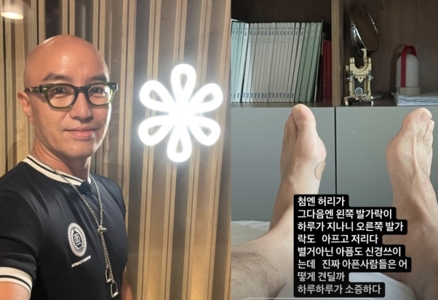 홍석천./홍석천인스타그램[마이데일리=이정민기자]탤런트겸방송인홍석천(53)이건강에이상신호를알리며근황을전했다.16일홍석천은자신의SNS를통해"처음에는허리가,그다음엔왼쪽발가락이하루가지나니오른쪽발가락도아프고저리다"고밝혔다.이어"별거아닌아픔도신경쓰이는데,진짜아픈사람들은어떻게견딜까.하루하루가소중하다"고덧붙이며마음속고충을털어놨다.앞서지난달31일에도자신의소셜미디어를통해"디스크가안좋다는진단을받았다"며허리디스크로고생중임을밝힌바있다.당시그는"오랫동안참애썼다.고통은둘째치고왠지서글프다"며허리디스크엑스레이사진을공개해안타까움을자아냈다.홍석천은1995년KBS대학개그제로데뷔했으며,1996년MBC공채탤런트로합격해MBC시트콤*남자셋여자셋*에서활약하며얼굴을알렸다.현재는유튜브채널*홍석천의보석함*을운영하며팬들과소통을이어가고있다.Copyright©마이데일리.무단전재및재배포금지.