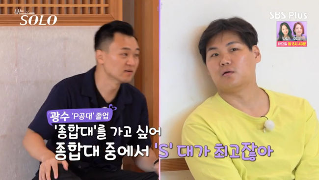 [스타뉴스|정은채기자]/사진='나는솔로'방송화면캡쳐'나는SOLO(나는솔로)'23기광수와영호가동반눈물을흘렸다.4일밤방송된ENA와SBSPlus의리얼데이팅프로그램'나는SOLO'178회에서는23기광수와영호가함께눈물을흘리며서로를위로하는장면이그려졌다.이날광수는서울대학교출신영호에게"부럽다.나는다시태어나면서울대학교에가고싶어.'종합대'를가고싶거든.종합대중서울대학교가최고이지않냐"라고다소뜬금없이자신의속마음을고백했다.이에영호가그런생각을하는이유를묻자포항공대출신광수는"난공대를나오지않았냐.주변에전부비슷한결의사람들밖에없다.그럼그사람들은시너지가일어나서더뒤틀리게된다"라고개인적인의견을밝혔다.그러면서"다들널디(nerdy)한사람들이모이다보니까시야가넓어져야하는데(그렇지못하게된다).사회성이부족한사람들도우리학교에많다.군대장기복무하고있는원사랑똑같다"라고주장했다.이를스튜디오에서지켜본데프콘은"이사람이순수하기때문에솔직한것.(연애시장에서)밀리는것같은아쉬움과여자에대해잘모르는것같은쓰라림을돌려서고백하는것"라고분석했다.이어광수는여자들에게'0표'를받고짜장면먹었던기억을떠올리며"자존감이여기까지떨어졌다"라고털어놨다.이에영호는"어릴적최애게임이었던남자주인공이선원에다가트럼펫을분다.너가너무그캐릭터같았다.그래서네자기소개를보고엄청감동받았다"라며갑작스럽게눈물을보이기시작했다.영호의진심어린이야기에감동받은광수역시덩달아눈물을흘리기시작했고,광수는자신의손수건을영호에게건네며서로를위로했다.이어진예고편에서두사람의동반눈물은계속이어졌다.영호는"감정이바다같다.엄청요동치고,바다물결치는게내마음대로안된다"라고자신의속마음을광수에게털어놨다.광수는그런영호의마음을이해하고함께눈물을흘렸다.종잡을수없는두사람의감정적인모습은보는이들의당황스러움을자아냈다.정은채기자[email protected]©스타뉴스&starnewskorea.com,무단전재및재배포금지