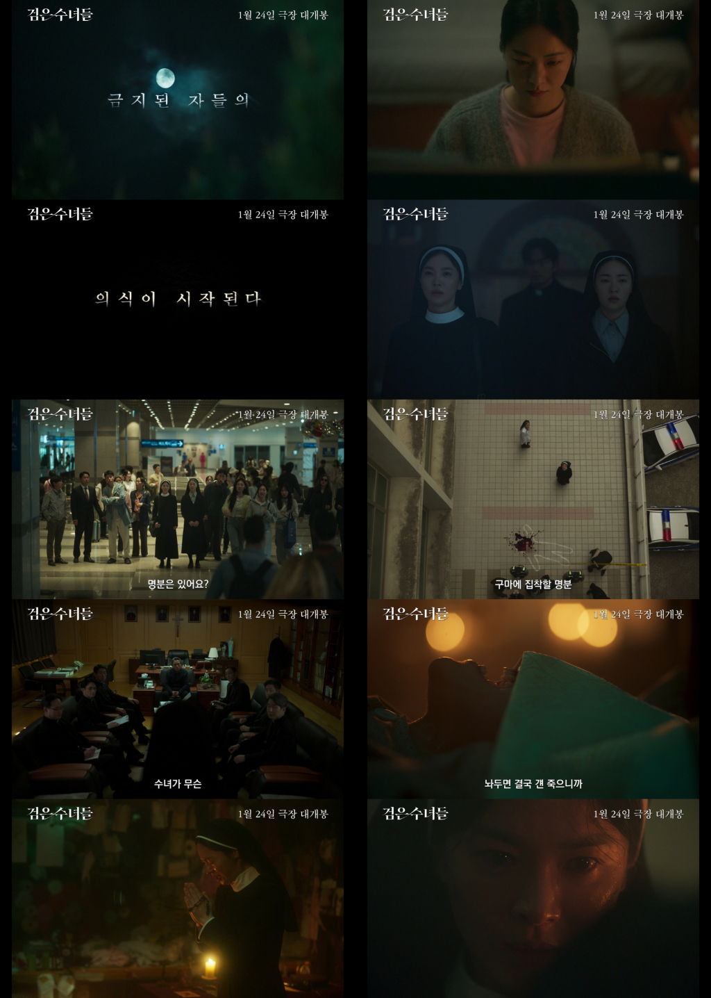 [스타뉴스|김나연기자]검은수녀들/사진=NEW영화'검은수녀들'이오는1월개봉을앞두고티저예고편을공개했다.'검은수녀들'은강력한악령에사로잡힌소년을구하기위해금지된의식에나서는사람들의이야기를그린영화다.'검은사제들'의두번째이야기로,구마가허락되지않은신분의수녀들이금지된의식에나선다는차별화된설정으로기대를모으는'검은수녀들'이런칭예고편으로뜨거운반응을불러일으킨데이어티저예고편을공개했다.16일공개된예고편은도심을배경으로울려퍼지는종소리를시작으로,굳은결심으로어딘가를향하는'유니아'수녀역의송혜교와의식을준비하는'미카엘라'수녀역전여빈의모습이담겨궁금증을끌어올린다.이어"금지된자들의의식이시작된다"라는카피는12형상에맞설수있는구마사제의부재속카톨릭교리와전통상서품을받지못하는신분인수녀가의식에나설것을예고하며영화적긴장감을고조시킨다.여기에구마를반대하고,의학으로소년을구할수있다고믿는'바오로'신부로변신한이진욱과강력한악령에사로잡힌'희준'역의문우진까지믿고보는배우들의존재감이더해져이목이집중된다.이처럼소년을구하기위해위험속으로뛰어든이들의이야기를그린티저예고편을공개해기대를높이는'검은수녀들'은확장된세계관과극적인재미로새해극장가를사로잡을것이다.한편'검은수녀들'은오는2025년1월24일극장개봉예정이다.김나연기자[email protected]©스타뉴스&starnewskorea.com,무단전재및재배포금지