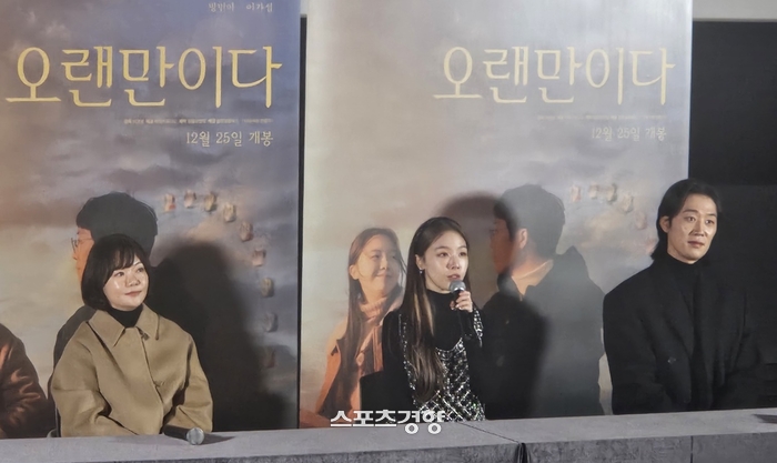 영화‘오랜만이다’에출연한방민아(가운데),사진|이다원기자배우방민아가크랭크업4년만에영화‘오랜만이다’(감독이은정)를개봉하는울컥한마음을내비쳤다.방민아는16일오후서울용산구CGV용산아이파크몰에서진행된‘오랜만이다’언론배급시사회및기자간담회에서개봉소감을묻자“오늘이렇게문득이자리에앉는데이런날(시사회)이올거로상상도못했다”며울먹거렸다.그는“정말꿈에그리던순간이었지만‘그날이올수있을까’란마음이더컸다”며“앉는순간울컥했다.내가바라고있었다는걸알게된순간이었다”고말했다.이어“오랜만에‘오랜만이다’를봤지만,내오래전모습을다시본터라부끄럽기도하고쑥스럽기도하다”면서도“내가보기에도좀귀엽긴하더라”고웃음을터뜨렸다.‘오랜만이다’는음악이라는꿈을포기하려는30대의가수지망생이우연한기회에잊고지내던학창시절의음악에대한꿈,그리고첫사랑에대해서회상하며현재의자신을돌아보게만드는힐링뮤직로맨스영화다.오는25일개봉.이다원기자[email protected]©스포츠경향.무단전재및재배포금지.