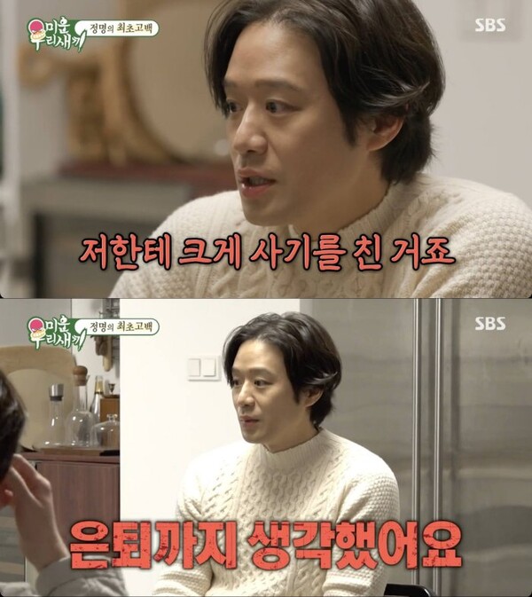 ▲사진|'미우새'방송화면[스포티비뉴스=배선영기자]배우천정명이은퇴까지고려했을정도로힘들었던과거를언급했다.천정명은8일오후방송된SBS'미운우리새끼'(이하미우새)에출연했다.이날천정명은엔틱한인테리어에정리정돈이깔끔한자택을공개했다.등장초반부터집구석구석을닦는모습을보여주기도했다.이어구두수집이취미라는그는전문가포스로구두의광을내는모습으로스튜디오의감탄을자아내기도.또이날천정명의집에는이상민,김희철이방문했다.이날두사람은천정명의생일을축하해주기위해방문한것.두사람은집에서나는향과깔끔함에감탄을표했다.생일파티는63빌딩과남산이훤히보이는뷰의루프탑에서진행됐다.생일파티를하며분위기가무르익자,천정명은2019년영화‘얼굴없는보스’이후연기활동을중단하게된사연을고백했다.천정명은“안좋은일이있었다.큰일이있었다.저한테는엄청큰사건이었다.15~16년정도오래같이일을한매니저가있었다.우리부모님도너무좋아하고막내아들처럼대했다.그친구가크게사기를친거다.문제가커졌었다”라고말했다.이어“너무가깝다보니너무믿었다.모든걸다맡겼다.나뿐만이아니라우리부모님한테까지사기를쳤다”라고고백했다.▲사진|'미우새'방송화면천정명은“해결하다보니많이지치더라.은퇴까지생각했다.너무상처를받았고정신적으로도힘들었고스트레스가컸다.‘어떻게나한테이런일이있을수가있지’할정도였다”면서당시심경을전했다.그는"사문서위조같은거였다.갑자기급하게사무실에서연락이왔다.임원분이빨리와달라고해서싫다고했다.회사사장님한테전화가또오더라.불안해서부모님과같이갔다.아직도그현장이기억난다.그친구가사기를친모든사람이다회사로찾아와종이를흔들더라.얼굴들이아직도기억난다.글자가보이지도않았다.어떻게해야할지모르겠더라.누군가책임을져야하는상황이라해결하려다보니원치않은일을하게됐고많이지치게됐다"라고말했다.천정명은사기피해액수에대해서도“너무큰액수다.상상을초월할정도다.그땐밥도안먹고멍하니있다보니가만히앉아만있어도살이쭉쭉빠졌다”라고언급했다.이어“너무큰배신을당하다보니내게어떻게이렇게까지할수있나싶었다.그만큼어릴때부터잘지냈던친구였다”라며마음의상처를토해냈다.또천정명은“부모님도많이힘들어하셨다.내가힘들어하니까그모습을보고더힘들어하신거다.어느날주변사람들을둘러봤는데우리가족들이나보다더힘들어하고있더라.그모습을보며이러면안되겠다,부모님을위해서라도열심히해야겠다싶어서활동을결심했다”라며다시활동을시작하게된배경을설명했다.<저작권자ⓒSPOTVNEWS.무단전재및재배포금지>Copyright©스포티비뉴스.무단전재및재배포금지.