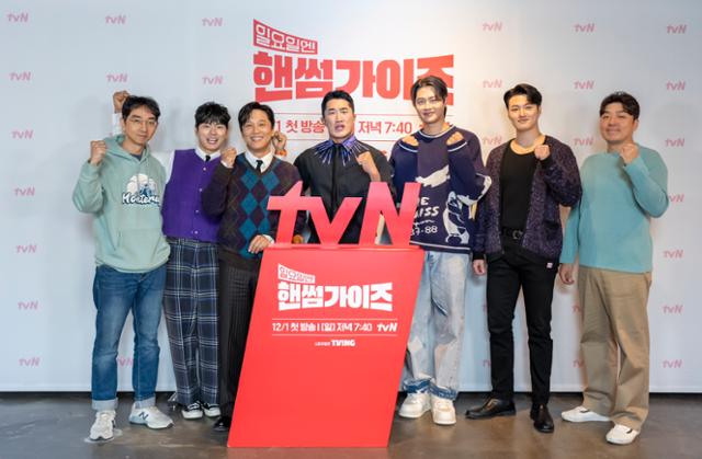 새버라이어티'일요일엔핸썸가이즈'가베일을벗었다.온가족이볼수있는예능을지향한다는다섯남자의포부가전해졌다.iMBC연예뉴스사진28일오전tvN새예능프로그램'일요일엔핸썸가이즈'(연출류호진,이하'핸썸가이즈')제작발표회가온라인으로진행됐다.행사에는류호진,윤인회PD와차태현,김동현,이이경,신승호,오상욱이참석했다.'핸썸가이즈'는대한민국을대표하는문화,자연,장소,매력적인인물을직접찾아나서는일요버라이어티예능이다.'어쩌다사장'시리즈등을통해일상의사소한감성을자극해뜻밖의웃음과큰울림을선사해온류호진PD의신작으로이번에는우리나라의다양한문화,자연,장소,인물을찾아나설예정이다.류PD는"방송이나가면어떤프로그램인지이해하기편하실것"이라며'핸썸가이즈'의탄생비화를설명하기시작했다.그는"문화도좋고자연도좋은데,시청자들에게프로그램이즐거우려면주말예능은좋은친구를만드는것이라고생각한다.매주얼굴을볼수있는사람들을보면서,1년~2년친해지며친구를사귀는느낌으로만드는게주말예능이다.다섯출연자들의얼굴이한국의가장위대한유산이라고시작하고싶었다.개인적인욕구나경험보다는같이보면서정들어가고교감할수있는소재가있으면좋지않을까생각했다"고이야기했다.iMBC연예뉴스사진함께할다섯멤버로는맏형차태현을필두로김동현,이이경,신승호,오상욱이낙점됐다.이이경은"회사와이번예능출연에대해고민을많이했다.배우로서작품을안하는것도아닌데말이다.고민을길게했다.그러던와중에PD님과통화를했고,PD님의플러팅에넘어갔다.목소리가너무좋고말씀을잘하시지않나.'이경씨의예능필모그래피에내작품이들어갔으면좋겠다'고해주시더라"고감동을받았던순간을떠올렸다.이어신승호역시"예능섭외를받고고민이컸다.가고자하는비전에대한고민이많았고,두렵기도했었다"면서도"난막하는걸좋아하는편인데,거기서즐거움을느끼고PD님이'막하셔도된다,아무것도모르고와도된다'고해주셔서크게욕심이생겼다"고거들었다.오상욱도고민이많았다고이야기했다."시안을보내주셨을때프로그램제목이'명예의전당'이었다.제목이올드해서고민하던찰나에,난예능경험이많이없는지라라인업을보고나서는이들을따라가기만해도되겠다싶어서출연했다"고말했다.'어쩌다사장'시리즈에이어한번더류PD의부름을받은차태현.류PD는"차태현의가장큰장점은내가전화를했을때받는다는것"이라며너스레를떨었다.그러면서도"말을하지않아도내말을넘겨짚어서잘이해하는출연자라는게감사하다.차태현은내가원하는걸다알고계시고,내가생각하지못했던아이디어도현장에서덧붙여서동료를이끌어가는사람이다.언제나든든한MC이자주연이자,조언자"라고이야기했다.이에차태현은"나영석이서진조합이S급이라면우리는A급이다.잘됐으면좋겠다"고웃었다.첫게스트로는방탄소년단진이출연했다.류PD는"멤버들은식구,형제라고치면매주오시는게스트들은그회차의특징적인부분들을표현해줄수있는분이좋겠다고생각했다.그리고첫방이지않나.한국대표하는곳을보러간다했으니,거창하지나한국문화를말해줄수있는사람을바랐다"며"BTS는적합하신분이지않나.바쁘신걸알지만연락을드려봤다.진씨도활동에관심이많다고해서촬영을오셨는데,정신없이휘둘려가다가집에가셨다"고밝혔다.이어윤인회PD는"진씨가'신박하다','이렇게해도되는거맞냐'고하시더라.이이경은'원래다이렇다,괜찮다.다음에또와야하지않겠냐'고제안을주더라"고말했다.이에이이경은"진이함께하는그림을그리고있다.내소망은있을수있지않나.연락도계속하고있다"고웃었다.각자부르고싶은게스트도이야기했다.윤PD는"지금당장드는생각은가장핫한브루노마스가출연하면좋지않을까한다"고말했다.이어김동현은알렉스페레이라,이이경은일론머스크를언급해웃음을자아냈다.끝으로류PD는"킬링타임만있는게아닌'어닝타임'이있다더라.우리프로그램은온가족이시청하면서한두가지얻어가는것도있고,가족끼리시청하는시간이되었으면좋겠다"고소망했다.일요버라이어티'핸썸가이즈'는오는12월1일일요일오후7시40분에첫방송된다.iMBC연예백승훈|사진출처tvNCopyright©MBC연예.무단전재및재배포,AI학습금지.