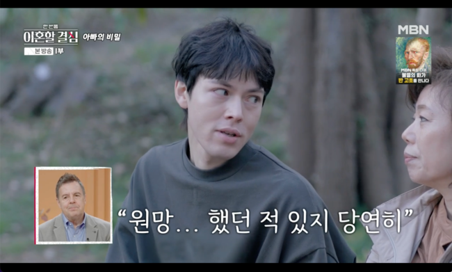 [OSEN=박근희기자]'한번쯤이혼할결심’로버트할리의막내아들이아빠를원망했다고솔직하게밝혔다.10일전파를탄MBN‘한번쯤이혼할결심’(이하‘한이결’)마지막회에서는처음으로스튜디오를찾은명현숙이남편로버트할리와나란히앉아37년간의결혼생활및(가상)이혼숙려기간에대해허심탄회하게이야기를나누는모습이그려졌다.로버트할리의막내아들은공황장애로힘들었다고언급을했고,명현숙은“아빠를원망한적없어?”라고물었고,아들은“원망했던적있지.당연히.실망했고.나도그때방송일을아빠랑같이해서잘되고있었다.한창방송스케줄많이잡혀있었고.나도잘안풀리게됐다”라고말해눈길을끌었다.아들은아버지가가족에게보탬이되고자알아보고다녔다는사실을알리기도.아들은“아빠가적은나이는아니니까쉽지않았다.아빠가사실최근며칠배달알바도하고있거든”이라고말해명현숙을놀라게만들었다.명현숙은“좀놀랍네.그렇게까지.내가너무코너로몰았나?”라며착잡한마음을숨기지않았다./[email protected][사진]‘한번쯤이혼할결심'방송화면캡쳐Copyright©OSEN.무단전재및재배포금지.