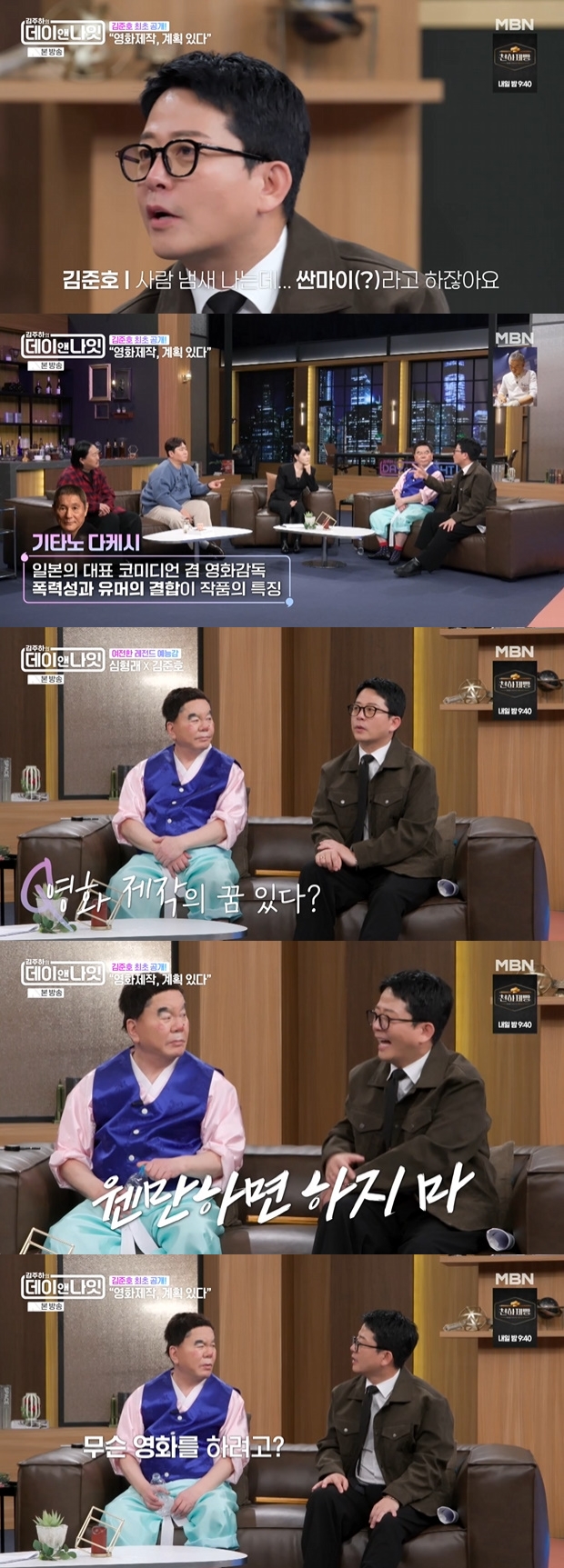 티브이데일리포토[티브이데일리김진석기자]'데이앤나잇'에코미디언김준호가영화제작의꿈을전했다.7일방송된MBN교양프로그램'김주하의데이앤나잇'에선'개그계의신구전설'심형래와김준호가출연해다양한이야기를나눴다.이날김준호는영화제작에대한생각을전했다.그는"초창기신인때생각이있었다"라며"아직10%이상생각이있다"라고밝혔다.그는"진지한코미디작품을만들어보고싶다"라고말했고,심형래는"웬만하면하지마"라고조언해웃음을자아냈다."무슨영화를하려고하냐"라고묻자김준호는"사람냄새나는데,싼마이라고하지않냐.B급감성이담긴코미디영화를하고싶다"라고말했다.그는더불어"가볍지않은코미디영화를하고싶다"라며"시나리오또한2개있다"라고밝혔다.이와함께김준호는유지태가도와준다는든든한소식까지전했다.그는"유지태가방송에서그만얘기하라더라.정당한페이를주는것"이라말했다.[티브이데일리김진석기자[email protected]/사진=MBN'데이앤나잇']데이앤나잇[Copyrightⓒ*세계속에新한류를*연예전문온라인미디어티브이데일리(www.tvdaily.co.kr)/무단전재및재배포금지]Copyright©티브이데일리.무단전재및재배포금지.