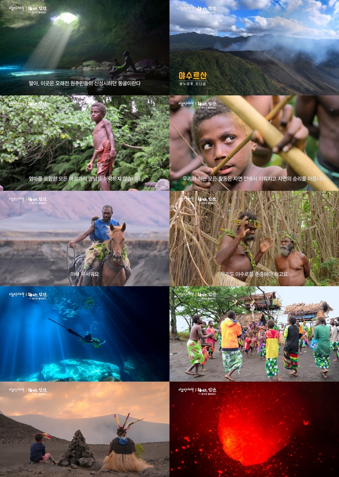‘화산,인간’사진|KBS방송화면캡처KBS가야심차게만들어낸‘화산’과의세상에서뜨거운공존이야기,다큐인사이트‘화산,인간’3부작이1부‘야수르할아버지’로그시작을알렸다.‘재벌집막내아들’로친숙한배우김남희의따스하고차분한내레이션이함께한1부에서는화산과함께살아가는바누아투사람들의이야기와더불어,‘지상낙원’이라불리는이곳의삶에도찾아온기후위기에대한경고까지전했다.28일방송된KBS1다큐인사이트‘화산,인간’에서는‘세상에서가장행복한나라’로불리는남태평양바누아투의위험천만한화산아래살아가고있는이쿠룹족과나락족을찾아갔다.‘화산,인간’1부의제목이기도한‘야수르할아버지’는바누아투의타나섬에서10분마다용암을분출하며살아숨쉬고있는활화산‘야수르화산’이다.모든것을순식간에앗아갈듯이시뻘건불꽃을뿜어내는야수르지만,태초의모습을간직한대자연에서화산과공생하고있는산악마을이쿠룹족과해안마을나락족에게야수르는‘할아버지’라고불릴만큼가족과같은존재였다.‘야수르의전설’아래살아가는산악마을이쿠룹족의바람은?타나섬의허파와도같은열대우림속,야수르의전설이깃든신비로운동굴에이쿠룹족남자조디와할례의식을마친소년들이찾아왔다.소년들은어엿한부족의일원이되기위한통과의례로가족과떨어져독립생활중이었다.상처가아물때까지엄마를포함한모든여성과만날수없으며,아이들은아빠들이돌본다.이들은자연속에서모든생필품을얻는방법들을아빠들로부터배우는시간을갖는다.소년들은불을피우고,나뭇가지와넝쿨등숲의자원으로덫을만들고,또활까지만들어쏘며밀림의생존법을익혔다.조디는“아이들에게가르치는모든것들은제아버지에게배웠다”며자신의지식이아들과손자에게도전수되기를기대했다.소년들은독립생활을마치며마을로돌아왔고,마을사람들은광장에모여한층성장한소년들을환영했다.마을에도착하자마자소년들은첫행보로둥글게원을그리며화산에대한경외심을표현하는춤을췄다.조디는“독립생활후집에돌아오면소년들은자신들이자연속에서무엇을경험했는지,위대한자연속에서얼마나강해졌는지를알게된다.먼훗날까지우리의아이들과그들의아이들이아름다운자연을유지하고전통을지켜나가길바란다”라며야수르와함께살아가고자하는바람을전했다.전기는없지만,‘화산의선물’온천이있는해안마을나락족의충만한삶화산활동으로생겨난천혜의자연을선물로받은해안마을나락족또한조상대대로전해내려온삶의방식을지키며살고있었다.나락족남자단은“아빠와수영하는시간을가장좋아한다”는딸멜리사를과거신성시하던해안동굴로데려갔고,“어릴적이곳을처음봤을때화산이만든대자연의비경에경외심을느꼈다.너에게도같은감정을선물하고싶다”고전했다.화산은나락족에게온천을선물하기도했다.멜리사는“우리마을에전기는없지만,화산이준‘온천’이라는선물이있다”며“온천에머리를감으면머릿니가사라진다”고그효능을소개했다.나락족들은빨래와목욕,조리까지모든생활에도움을주는온천을소중히여기고있었다.이쿠룹족소년들이할례의식을치르듯,나락족의소녀들은첫생리후살갗을베어부족의문신을새기는과정을어른이되는통과의례로치르고있었다.아직9살인멜리사는“몸에칼을댈생각을하면무섭다.그래도언젠가는해야한다.우리의의식이니까...”라며결연한모습을보였다.‘분노한야수르’...바다에서도땅에서도“자연의균형이무너졌다”나락족에게는‘화산의자손’이되기위해또하나의관문이있었다.화산재로인해생물이자랄수없는불모의땅이되어버린‘화산재평원’을찾은단은딸멜리사에게“20여년전야수르의폭발이모든걸바꿔놓았다”며화산폭발과함께호수가무너져세상의종말처럼모든걸휩쓸어갔던순간을떠올렸다.그러나그는“두려워하지말아라.그냥계절처럼자연스럽게생기는현상이다.야수르는‘파괴의신’이아니다.우리모두를사랑하신다”며야수르의분화구를마주했다.그리고단과멜리사는최초의조상이자가족인‘야수르할아버지’에게춤과노래를보내며자손이찾아왔음을알렸다.그러나기후위기로대자연의균형이깨지며이쿠룹족과나락족은어려움을겪고있었다.무엇이든아낌없이내어주던바다는수온이오르며사막화됐다.물고기를잡으려먼바다까지나가본나락족들에게물고기는보이지않았다.화산재속영양분덕분에비옥한땅에서농사를짓던이쿠룹족은야수르가격렬하게분화하면서생긴화산재로햇빛이차단되고토양이산성화되며작황이예년같지않게됐다.이쿠룹족의부족장은야수르의정령들이모여사는자이언트반얀트리를찾아가정령들과소통하는영적인존재‘야수르미네’에게도움을구했다.야수르미네는오랜기다림끝에“야수르는자연의균형이무너졌다고한다.야수르는여전히우리를보살필것이지만,우리도야수르를존중하고인간과자연은서로를지켜줘야한다고한다”고야수르의뜻을전했다.‘화산,인간’은초고화질4KHDR로화산의속살은물론,더욱생생한바누아투대자연의생동감을담아보는이들의가슴을절로웅장하게만들었다.여기에부드럽고다정한배우김남희의내레이션은바누