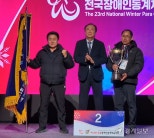 금15개·2만4천474.00점획득…강원도에6천385.40점차로뒤져이찬호4관왕등다관왕5명배출…인천,3천135.40점으로13위제23회전국장애인동계체육대회에서종합2위를차지한백경열총감독(왼쪽)및허범행경영지원본부장(오른쪽)이준우승기와트로피를들고기념촬영을하고있다.임창만기자경기도가제23회전국장애인동계체육대회서2년연속우승에실패했지만,아름다운인간도전의‘겨울드라마’를썼다.경기도는30일강원도일원에서나흘간열린이번대회에서총2만4천474.00점(금15개·은21개·동메달16개)을기록해종합2위에올랐다.개최지강원도는3만859.40점(금16개·은8개·동메달5개)으로정상에섰다.인천시는3천135.40점으로13위를기록했다.‘디펜딩챔피언’자격으로출전한경기도는대회초반부터상위권흐름을유지했지만,일부핵심종목에서기대에못미친결과가종합순위에영향을미쳤다.특히메달획득을노렸던혼성휠체어컬링4인조WC-E(선수부)에서16강에그치며점수를쌓지못한대목이아쉬움으로남았다.그럼에도불구하고경기도선수단의전체적인경기력은돋보였다.이번대회에서경기도는4관왕1명을포함해총5명의다관왕을배출하며저력을과시했다.이찬호(경기도장애인스키협회)는남자바이애슬론스프린트4.5㎞STANDING과인디비주얼7.5㎞STANDING에서금메달을차지한데이어크로스컨트리스키4㎞ClassicSTANDING,6㎞FreeSTANDING에서도정상에오르며4관왕을달성했다.알파인스키에서도다관왕이나왔다.박채이는여자알파인회전SITTING과대회전SITTING에서모두우승하며2관왕에올랐고,양지훈은남자알파인회전STANDING과대회전STANDING을석권하며금메달2개를추가했다.대회마지막날에는혼성아이스하키OPEN(선수부)동메달결정전에서서울시를3대0으로꺾고시상대에올랐다.폐회식은이날오후3시신라모노그램강릉연회장에서열렸다.경과보고와하이라이트영상상영을통해대회여정이정리됐고,시상과기념촬영,대회기강하와폐회선언으로4일간의열전이막을내렸다.정상은내줬지만,경기도가남긴성과는분명했다.종목전반에서확인한경쟁력과다관왕들의활약은다음대회를향한분명한방향을제시했다.경기도는이번결과를토대로전력을재정비해내년대회에서다시한번정상도전에나설계획이다.