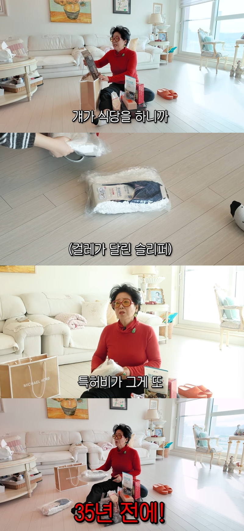 사진=유튜브채널‘순풍선우용여’캡처.선우용여가자신이최초로걸레달린슬리퍼를개발했다고주장했다.28일유튜브채널‘순풍선우용여’에는배우노주현이출연해800평짜리초호화대저택을최초공개했다.이날선우용여는노주현을만나기전,그에게줄선물들을소개했다.눈길을끈건걸레슬리퍼.선우용여는“내가청소할때발에걸레가달려있으니까너무신나더라”며“배우여운계씨랑특허를내려했는데특허비가너무비싸더라”고전했다.제작진이“선생님이이거개발하신거예요?”라고되묻자,선우용여는“내가한거라니까35년전에”라며분통을터트렸다.이어“내가아이디어는참좋았는데누가(특허를먼저)해버렸다”고아쉬워했다.김지혜기자[email protected]©일간스포츠.무단전재및재배포금지.