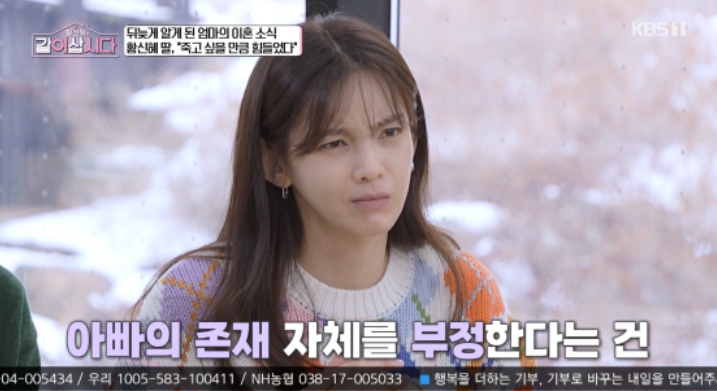 [스타뉴스|김노을기자]황신혜(왼쪽),이진이/사진=스타뉴스배우황신혜가딸이진이에게이혼사실을숨긴이유를털어놨다.28일방송된KBS1TV예능프로그램'황신혜의같이삽시다'에서는싱글맘황신혜,정가은,장윤정이심리상담가박상미를만나는모습이그려졌다.이날황신혜는이혼당시를떠올리며"아이에게(이혼에대해)말을못했다.딸이초등학교입학을앞둔시점이었다"고말문을열었다.황신혜의딸은배우이진이다.그는"아이가다른사람을통해서이혼얘기를들을까봐이혼발표를좀당겨서했다"고회상했다./사진=KBS1TV방송화면이어"아이가6학년때내이름을검색했는데'이혼'이연관검색어에뜨면서기사를통해이혼사실을접하게된거다.너무큰충격이었다고하더라"고털어놨다.이에박상담가가"딸에게는(부친의부재에대해)뭐라고했냐"고묻자황신혜는"'아빠가일때문에외국에갔다'는식으로말했다.어린딸에게이혼사실을알리거나설명할생각도못했다"고답했다.황신혜는"나중에딸이말하기를'그때너무힘들었다'고하더라.'그때왜말안했냐'고하니까'엄마가더힘들어할까봐말을못했다'고하더라.내색을전혀안했던거다"고이진이의속내를전했다.또"딸이죽고싶을정도로힘들었다는말을들었을때,그때좀많이미안했다"며눈시울을붉혔다.그러자박상담가는"속깊은아이일수록더관심을가져야한다"며"딸에게진심으로고마움을전하고혼자감당하게해서정말미안하다고,딸이정말나아질때까지말을해줘야한다"고조언했다.김노을기자[email protected]©스타뉴스&starnewskorea.com,무단전재및재배포금지