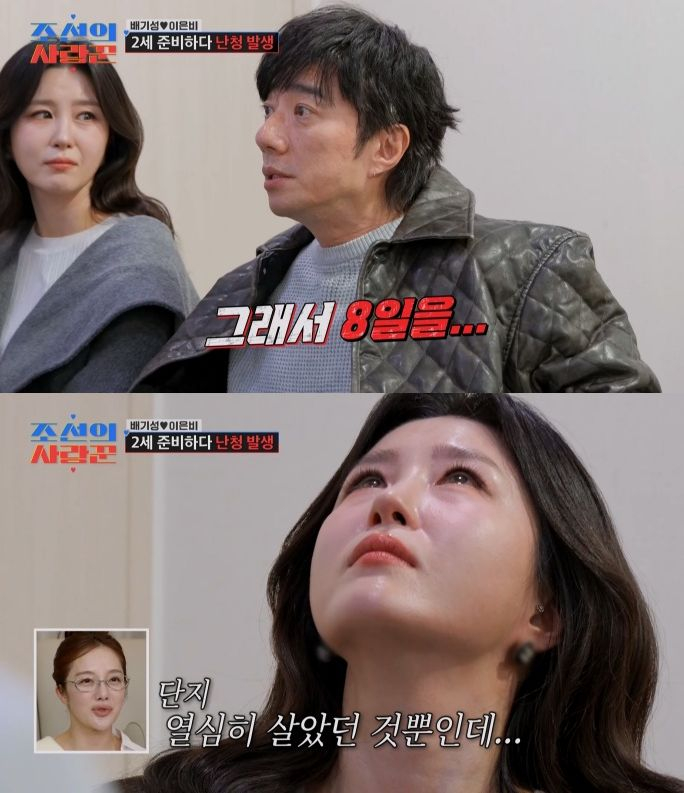 사진=TV조선예능배기성이결혼9년차첫시험관준비중청천벽력같은진단을들었다.지난2일방송된TV조선예능조선의사랑꾼'에는배기성이‘역대급스킨십부부’의위용에이어진후일담을전했다.이후배기성은건강상태를점검하기위해한의원을찾았다.배기성이오른쪽귀가안들리는‘돌발성난청’증상을호소하자,한의사는“임신을준비하기위해내에너지는1인데,10을가져다썼다.빚쟁이가됐다”고현상태를진단했다.단호한한의사의말에결국배기성부부는얼굴을붉히며허탈한웃음을터트렸다.“성기능이없는데…교만이고자만이다”라는한의사의촌철살인발언도이어졌다.배기성은“무조건많이하라고해서8일을…!이러다가돌연사할것같다고생각했다”며50대의체력으로8일연속노력할수밖에없었던억울함을토로했다.스튜디오의사랑꾼들이경악한가운데,김국진은“나는지금배기성이살아있다는게놀랍다”라며혀를내둘렀다.또한의사는“이상태로는임신하는건반대다”라며임신준비외에도일상이분주한이은비에게휴식을권했다.이은비는“살다보니결혼9년차가됐더라.고민만하다이만큼왔다.더이상미루면안되겠다싶어서시험관도고려하게됐다”며눈시울을붉혔다.배기성의침치료후,이은비는집에방문할윤정수부부를위해음식을준비했다.이윽고배기성이등장하자,부엌은순식간에핑크빛으로물들었다.거침없는애정표현으로분위기를후끈달아오르게한배기성은무뚝뚝하셨던아버지를반면교사로삼아,아내의정확한요구로‘노력형사랑꾼’이됐다고지금의모습을설명해박수를받았다.한편‘조선의사랑꾼’은매주월요일오후10시에방송된다.이주인기자[email protected]©일간스포츠.무단전재및재배포금지.